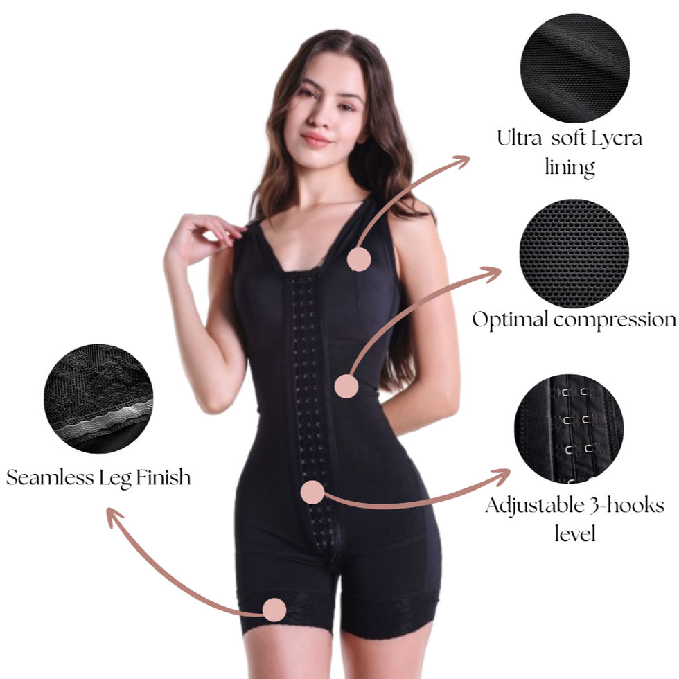 La Silueta Esencial es una faja colombiana de alta compresión con brasier incorporado, diseñada para brindar moldeo corporal completo y soporte postoperatorio. Fabricada con Powernet y Lycra premium, ofrece una compresión médica eficaz y una textura suave ideal tanto para el uso diario como para la recuperación postquirúrgica de procedimientos como mamoplastia, abdominoplastia o liposucción.